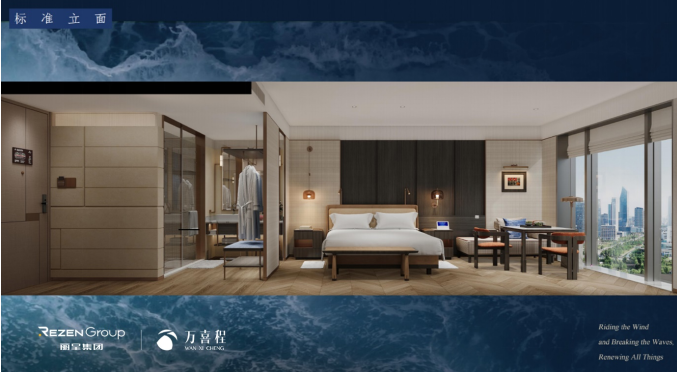中高端豪致酒店重构城市精致度假生活场景,倡导热情好客、恰到好处的东方待客之道。“城市会客厅”理念以“东韵西型、精致摩登”匠心精神打造当代国际新知性美学;类星级酒店全时餐饮(延展至客房)充分展现了万喜程的服务基因和品牌的丰富体验;独特的城市风貌和非遗活化融合极大丰富了“千店千面”的个性美学。遵循“品效第一”策略下,空间全模组装配及源头供应链能力,豪致标准模型用14万造价打造出心奢体验的高质价比产品力。